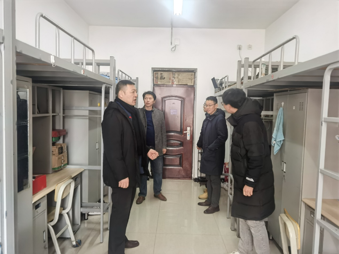 随后检查组一行来到公司寒假留校员工公寓,看望假期里仍坚持实验的同学们并全面了解他们的宿舍生活情况。欧志强副书记重点强调了宿舍的用电安全和内务整理,并询问同学们寒假留校生活有无困难或不便之处,对于即将离校的同学送上了新春祝福,祝大家在即将到来的龙年春节平安吉祥。